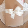 Cinta de serapilheira e rodela com nomes ou monograma.