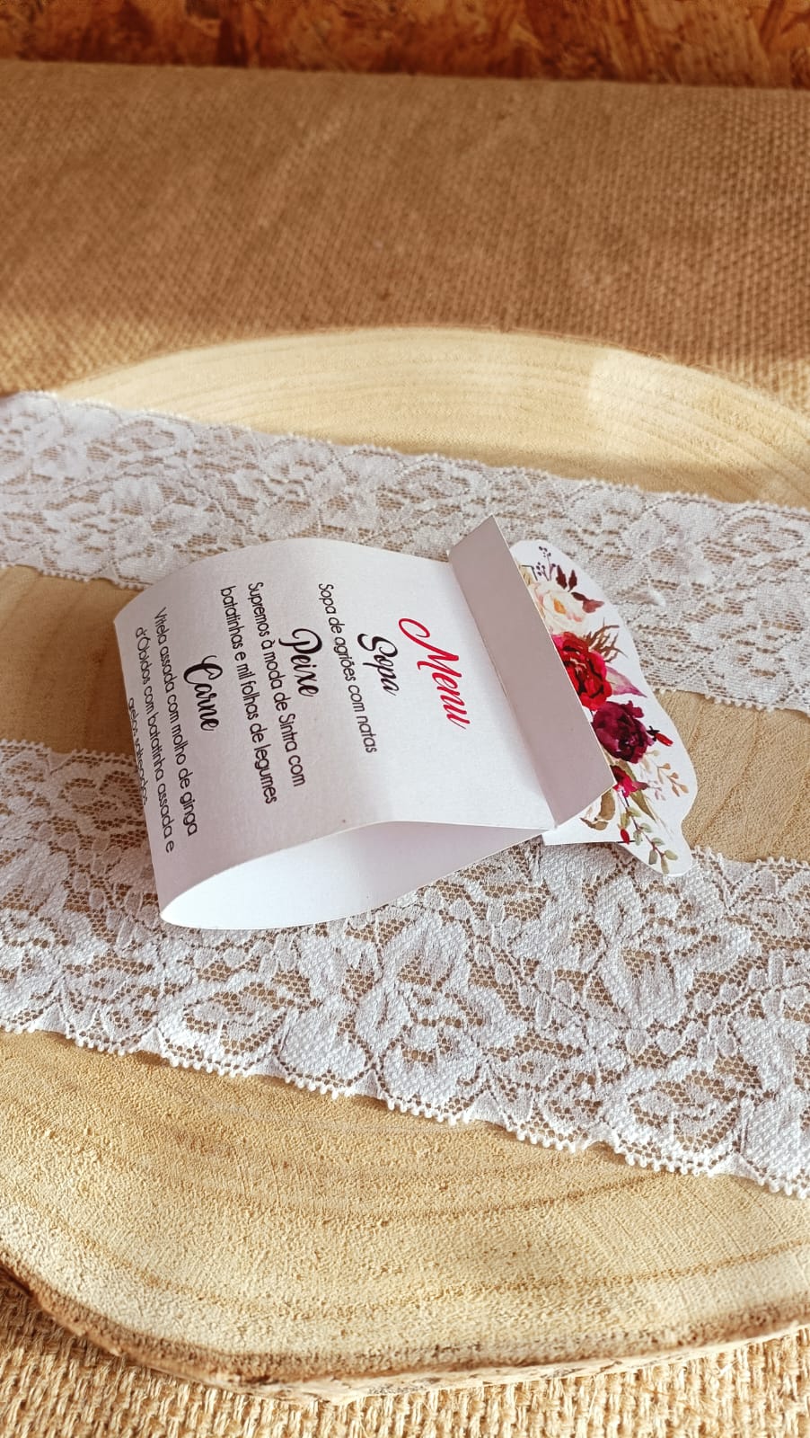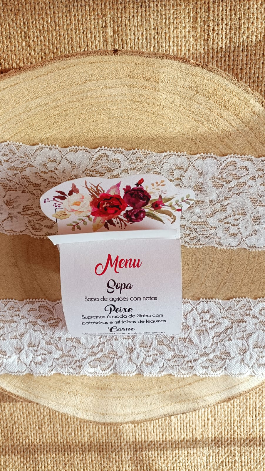 Ementas em Formato Argola para colocar à volta do guardanapo.