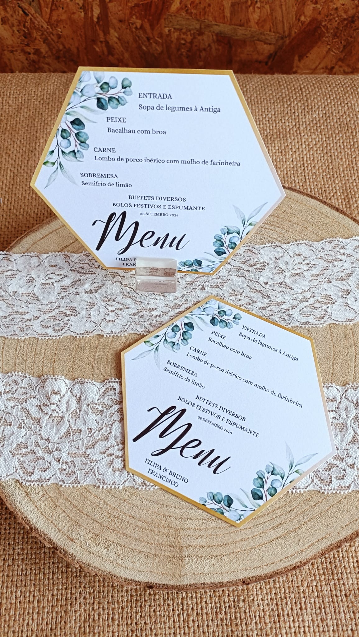 Previous Product Next Product Ementa Hexágono 0,70 € Ementa em formato hexagonal. Possibilidade de adaptar ao seu estilo de decoração e tema. Ementa Hexágono quantity Add to cart Categories: Casamentos, Ementas Reviews (0) Reviews There are no reviews yet. Be the first to review “Ementa Hexágono” Cancelar respostaO seu endereço de email não será publicado. Campos obrigatórios marcados com *Your rating * Rate… Perfect Good Average Not that bad Very poor Your review *Name * Email * Guardar o meu nome, email e site neste navegador para a próxima vez que eu comentar. Related products Add to cartCasamentos, ConvitesConvite Creta 1,60 € Add to cartCones, CasamentosCones de Pétalas Kraft 0,85 € Add to cartCones, CasamentosCones de Pétalas Mapa 0,70 €